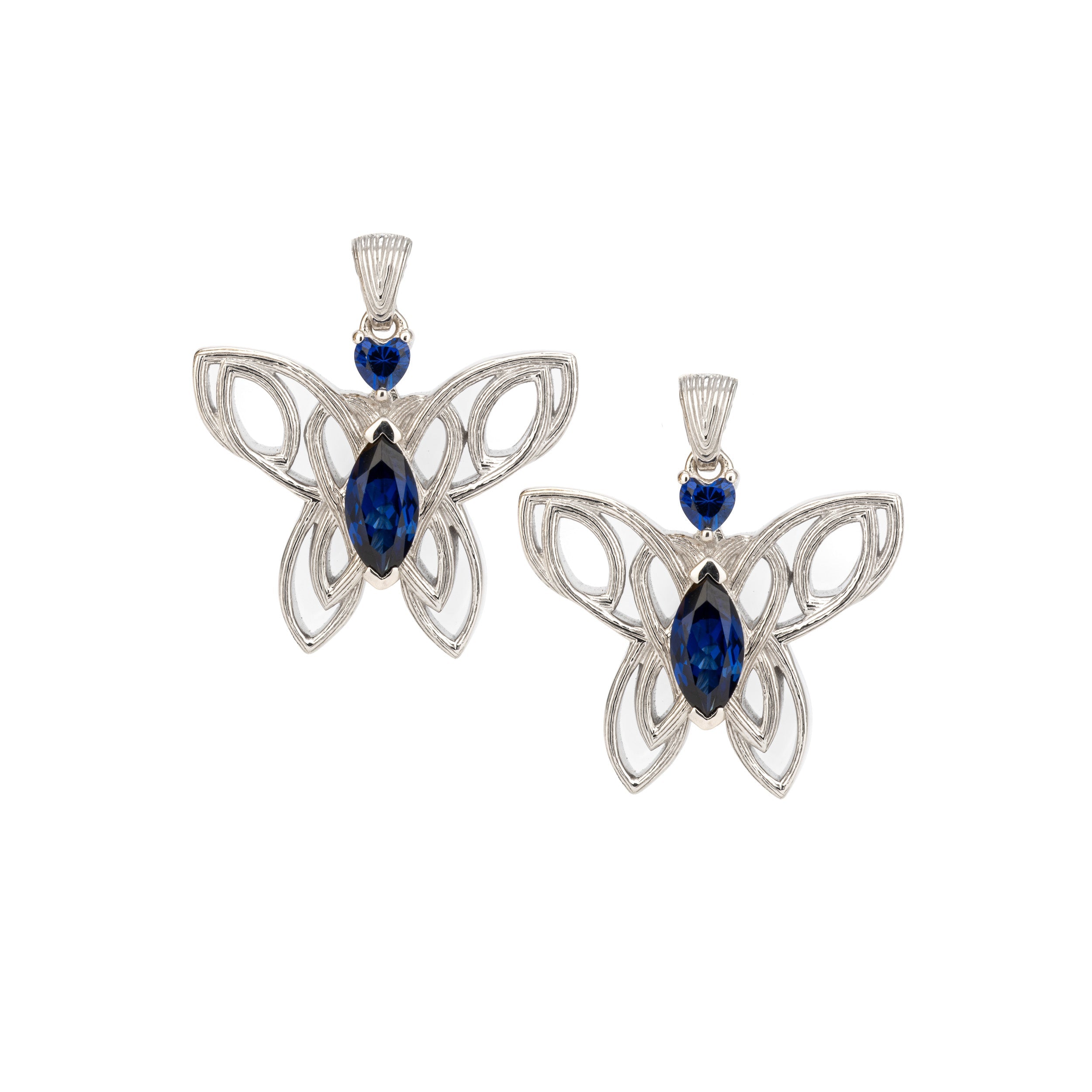 Materials: Sterling Silver, Rhodium and Lab Grown Blue Sapphires (Marquise 3mm x 6mm - Heart 3mm)