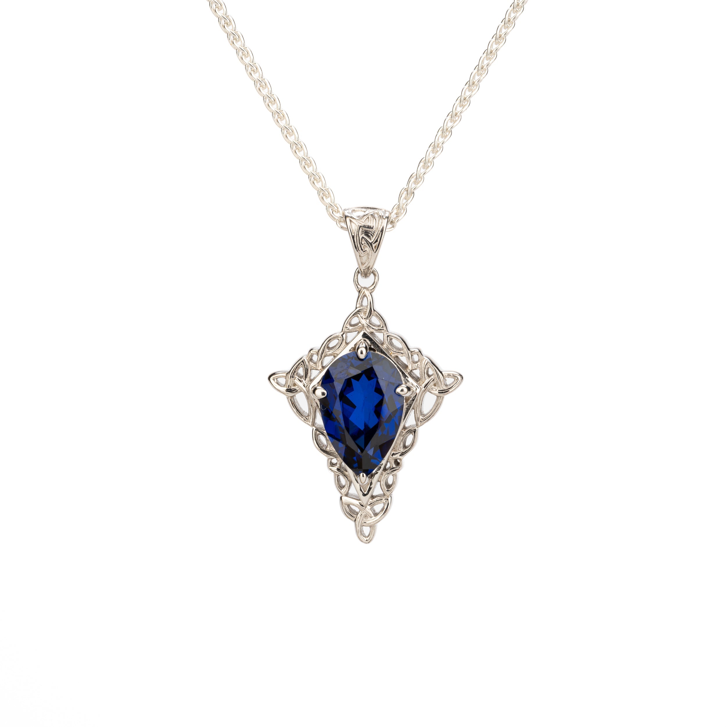 Materials: Sterling Silver, Rhodium with Lab Grown Blue Sapphire (Pear Cut 12mm x 8mm)