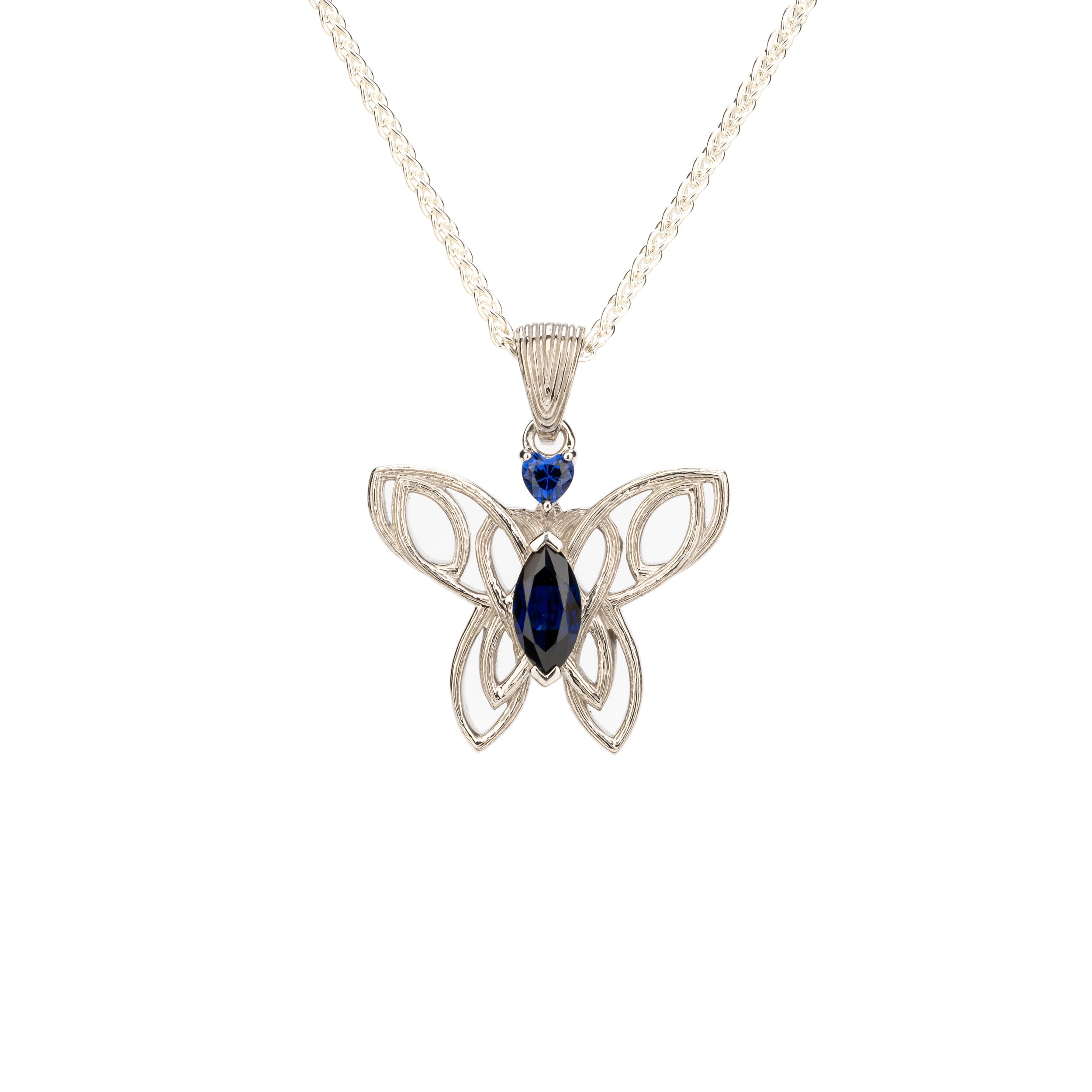 Materials: Sterling Silver, Rhodium with Lab Grown Blue Sapphire (Marquise Cut 8mm x 4mm, Heart Cut 3mm x 3mm)