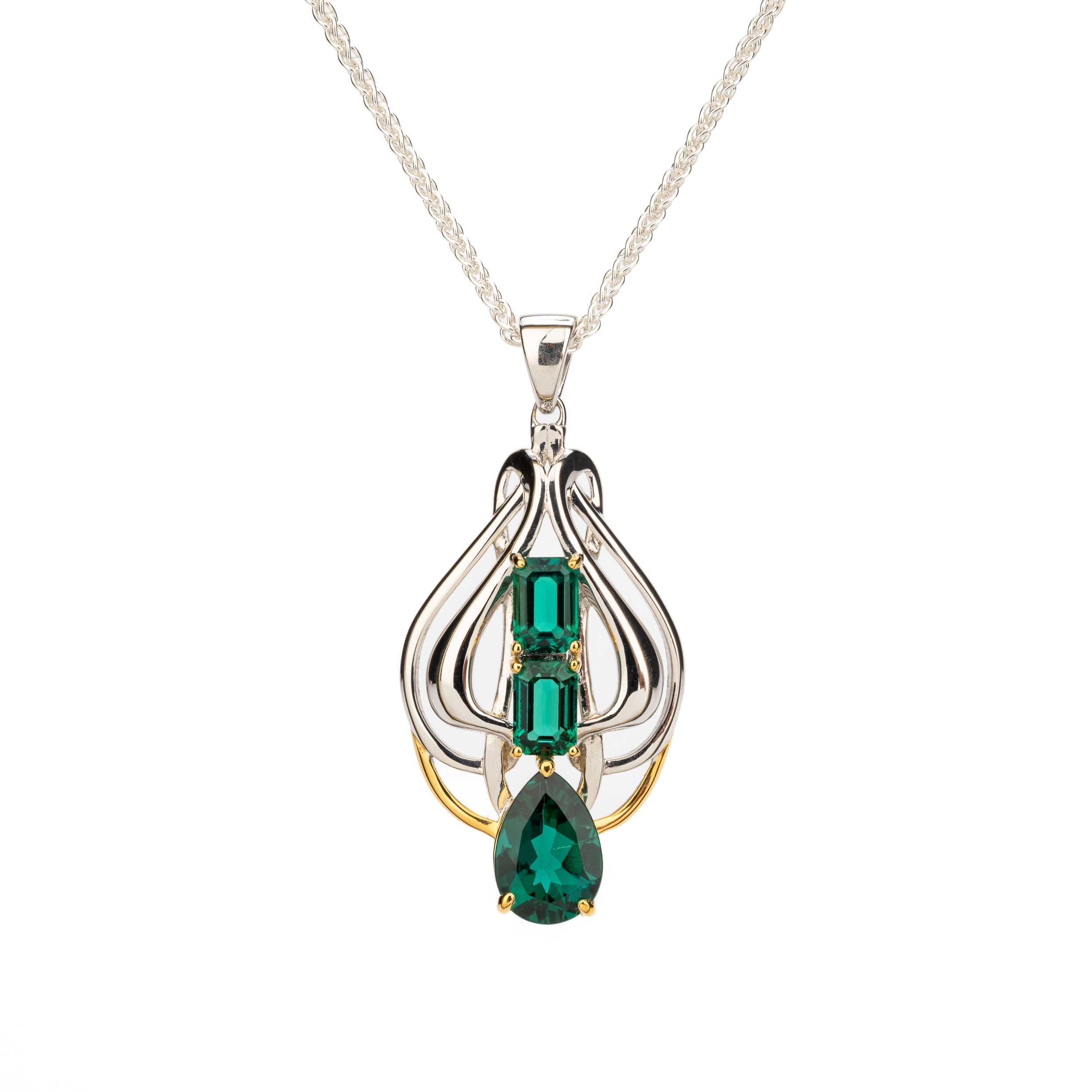 Silver and 18k Vermeil and Lab Grown Emerald Alchemy Pendant