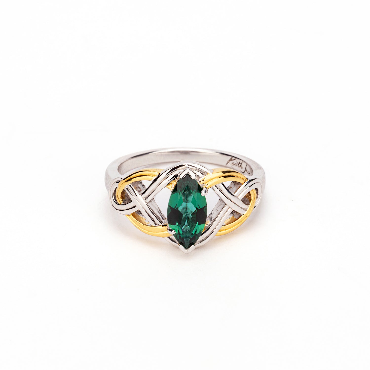 Materials: Rhodium Sterling Silver and 18k Vermeil with Lab Grown Emerald (Marquise 10mm x 5mm)
