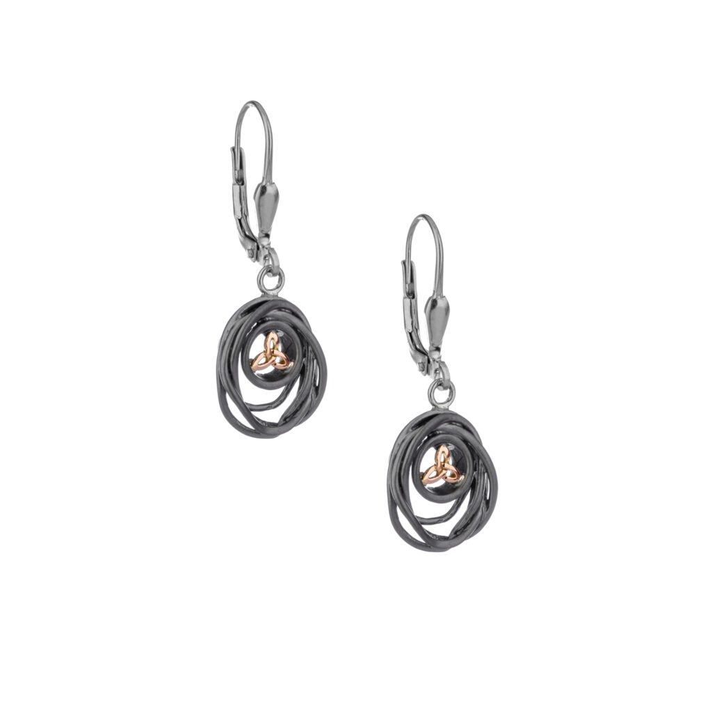 Darkened Silver + 10k Rose Gold Celtic Cradle of Life Drop Earrings