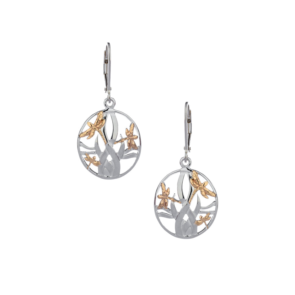 Silver and 10k Gold Dragonfly In Reeds Earrings