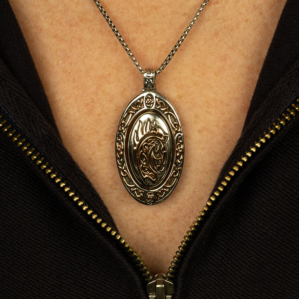Silver and Bronze Reversible Horse Spinner Pendant Large
