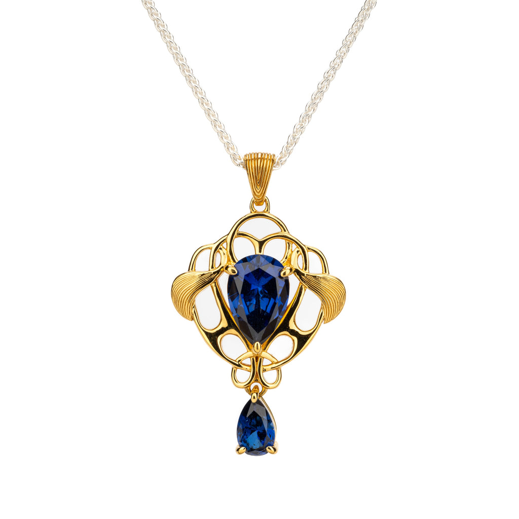 Materials: 18k Vermeil (2.5micron) on Sterling Silver with Lab Grown Blue Sapphire (Pear Cut 12mm x 8mm, 8mm x 5mm)