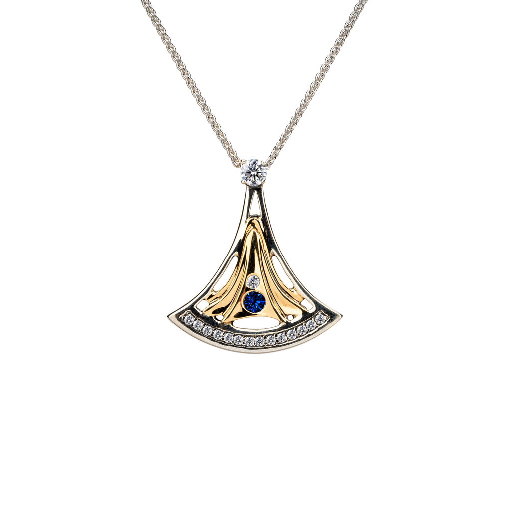Materials: Sterling Silver with 24k Vermeil (3 micron) and Lab Grown Blue Sapphire (Round 3mm), White Moissanites (Round 3.5/1.5/1.3mm)