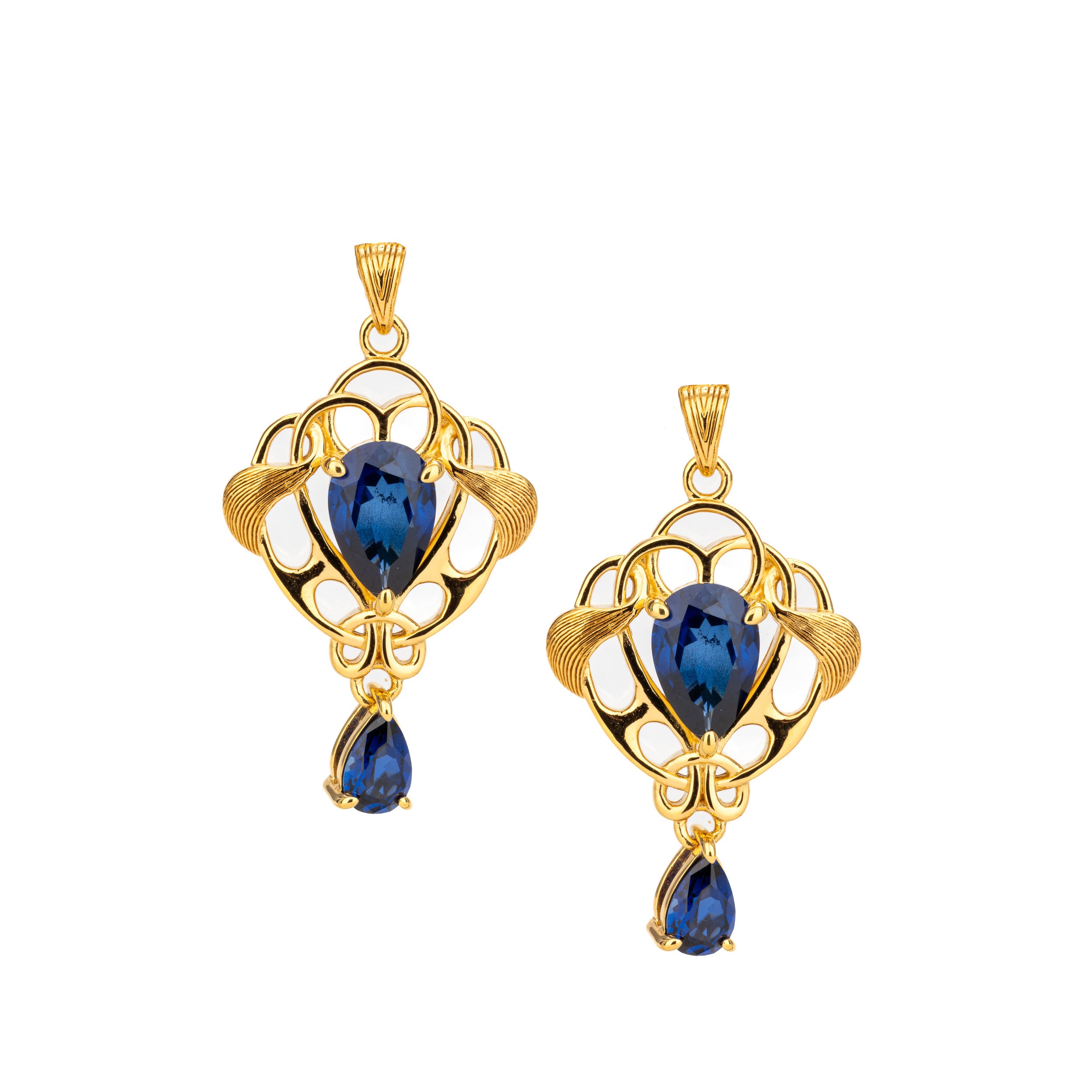 Materials: 10k Gold, Lab Grown Blue Sapphire (Pear Cut 9mm x 6mm and 6mm x 4mm))