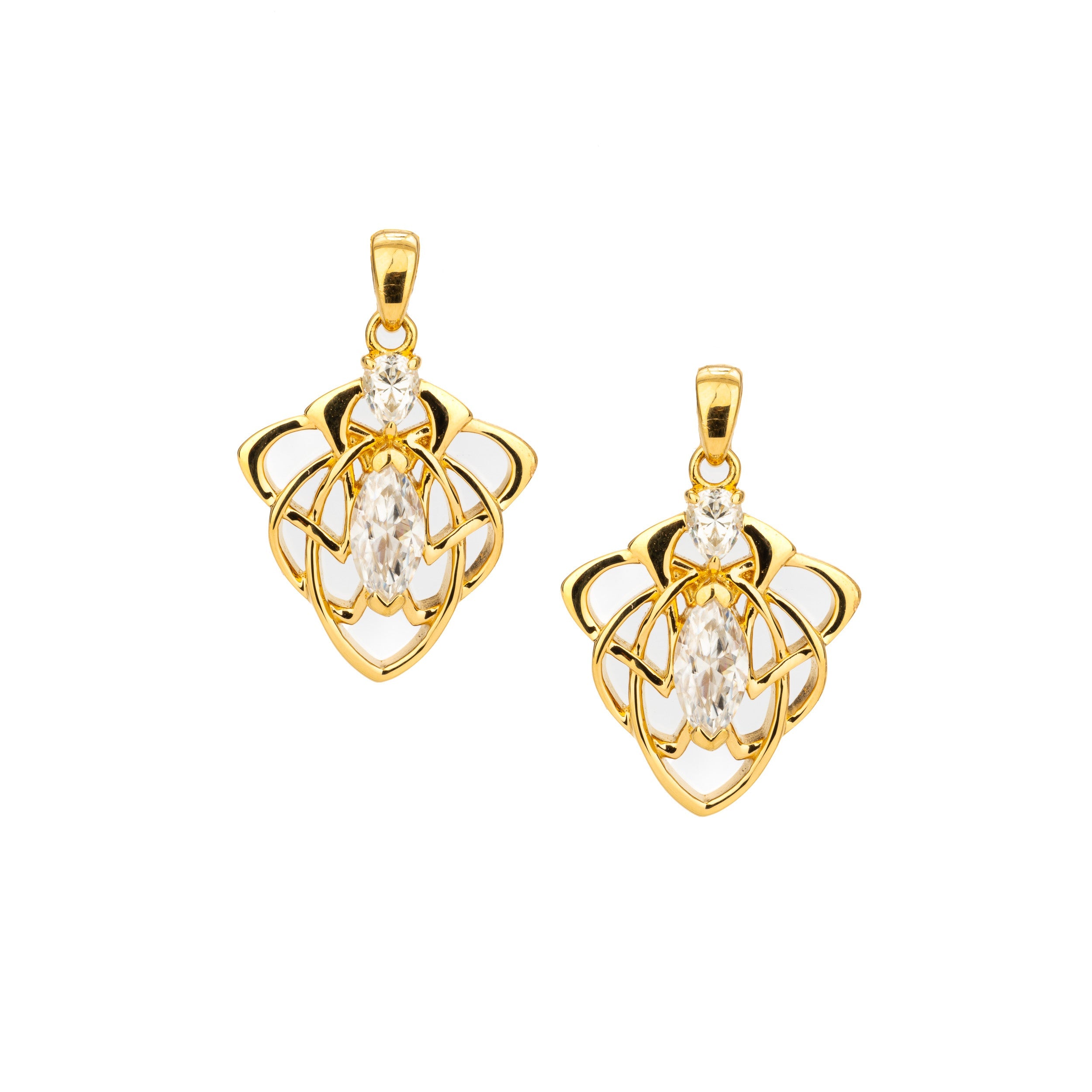 Materials: 18k Vermeil (2.5 micron) on Sterling Silver, White Moissanite (Marquise Cut 8mm x 4mm Pear Cut 4mm x 3mm)