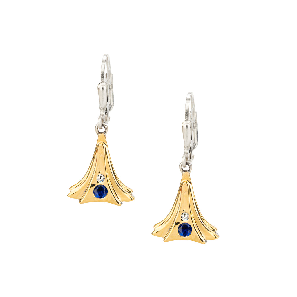 Silver with 24k Vermeil and Lab Grown Blue Sapphire and White Moissanite Alchemy Leverback Earrings