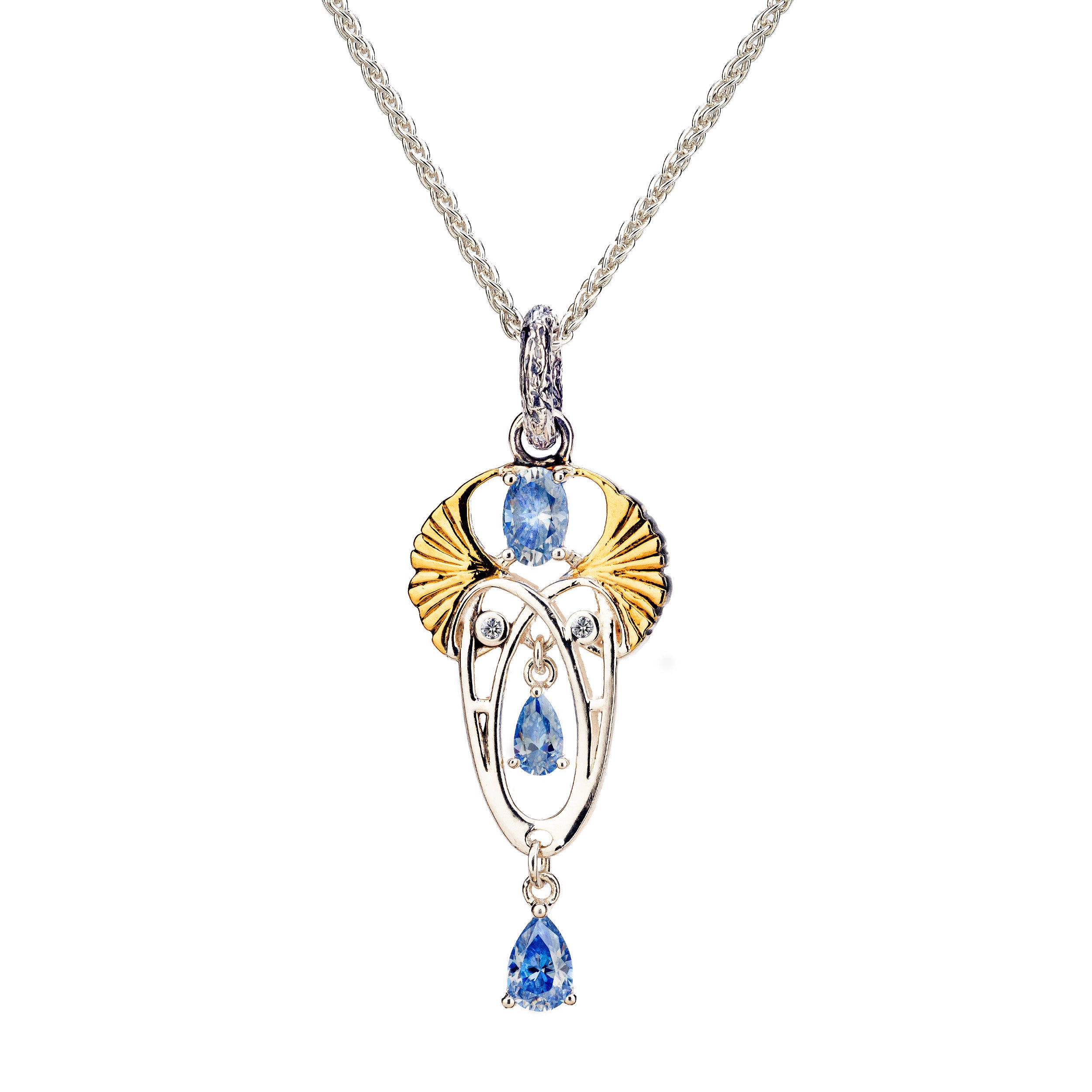 Materials: 10k Gold with Light Blue Moissanites (Pear 4mm x 6mm, 3mm x5mm, Oval 4mm x 6mm, Round 1.3mm)