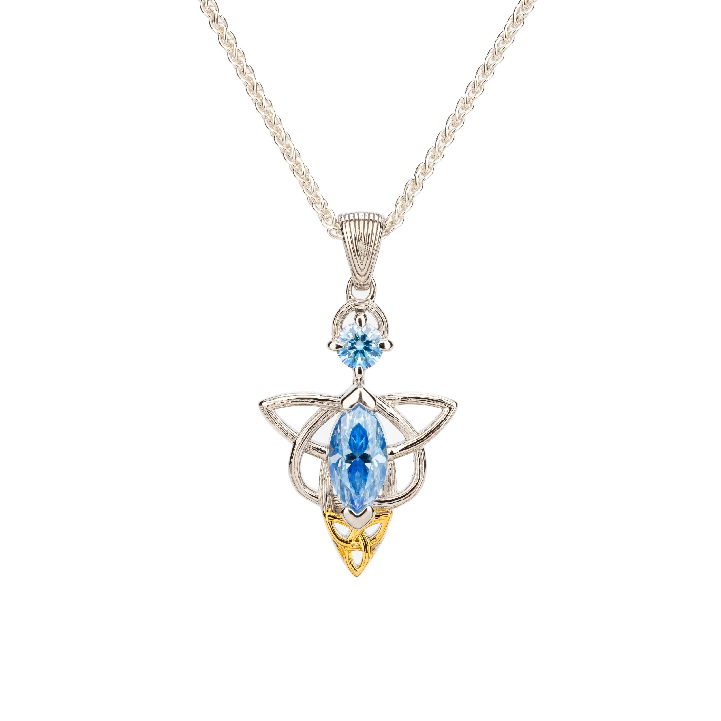 Silver and 18k Vermeil and Light Blue Moissanite Alchemy Angel Pendant