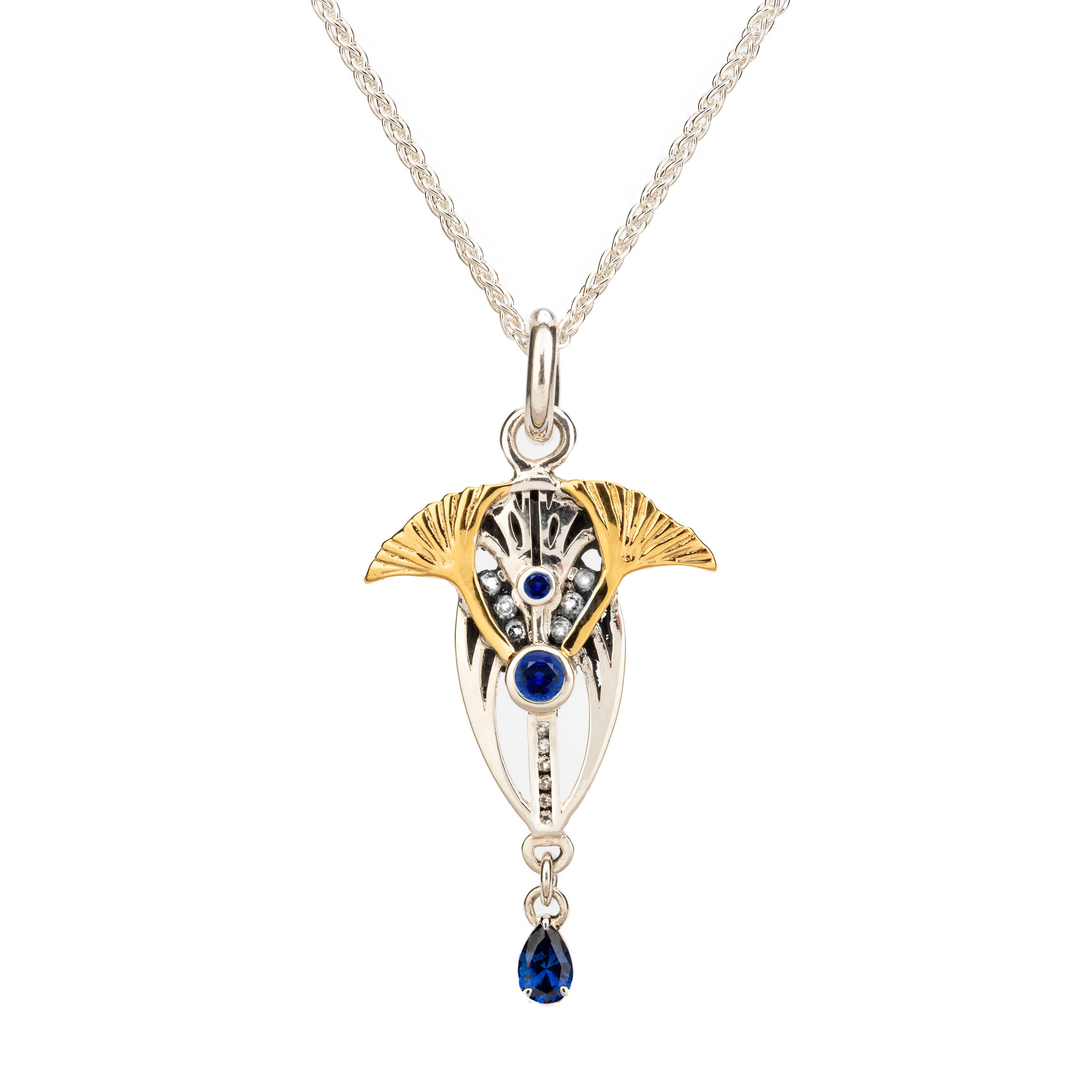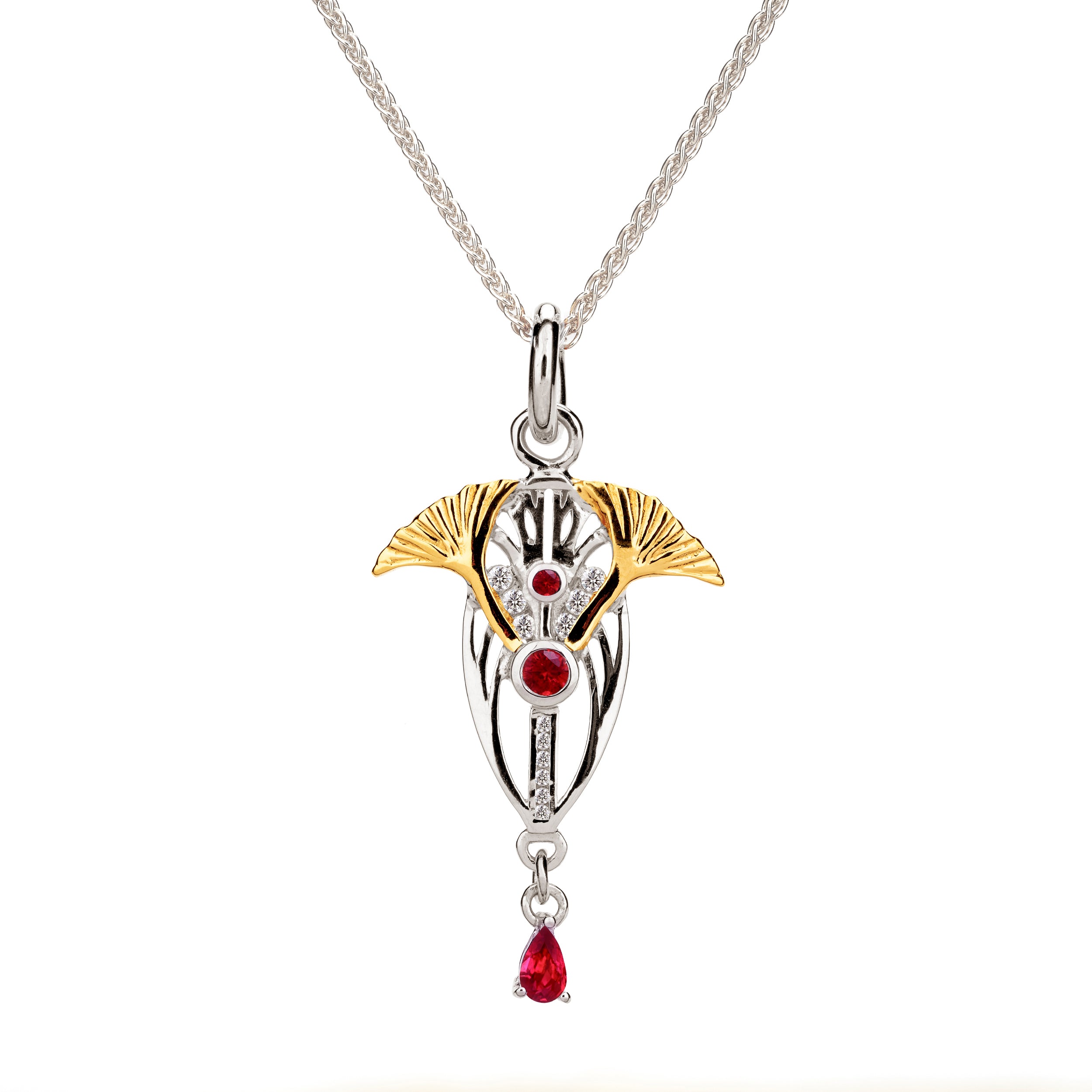 Silver and 24k Vermeil with Lab Grown Ruby or Sapphire and White Moissanite Alchemy Pendant
