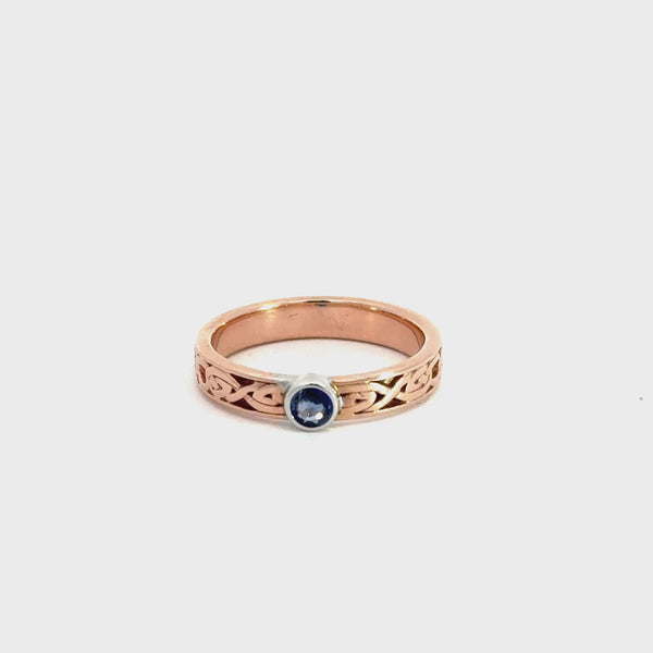 Materials: 10k Rose Gold and round cut Blue Sapphire (0.20ct)