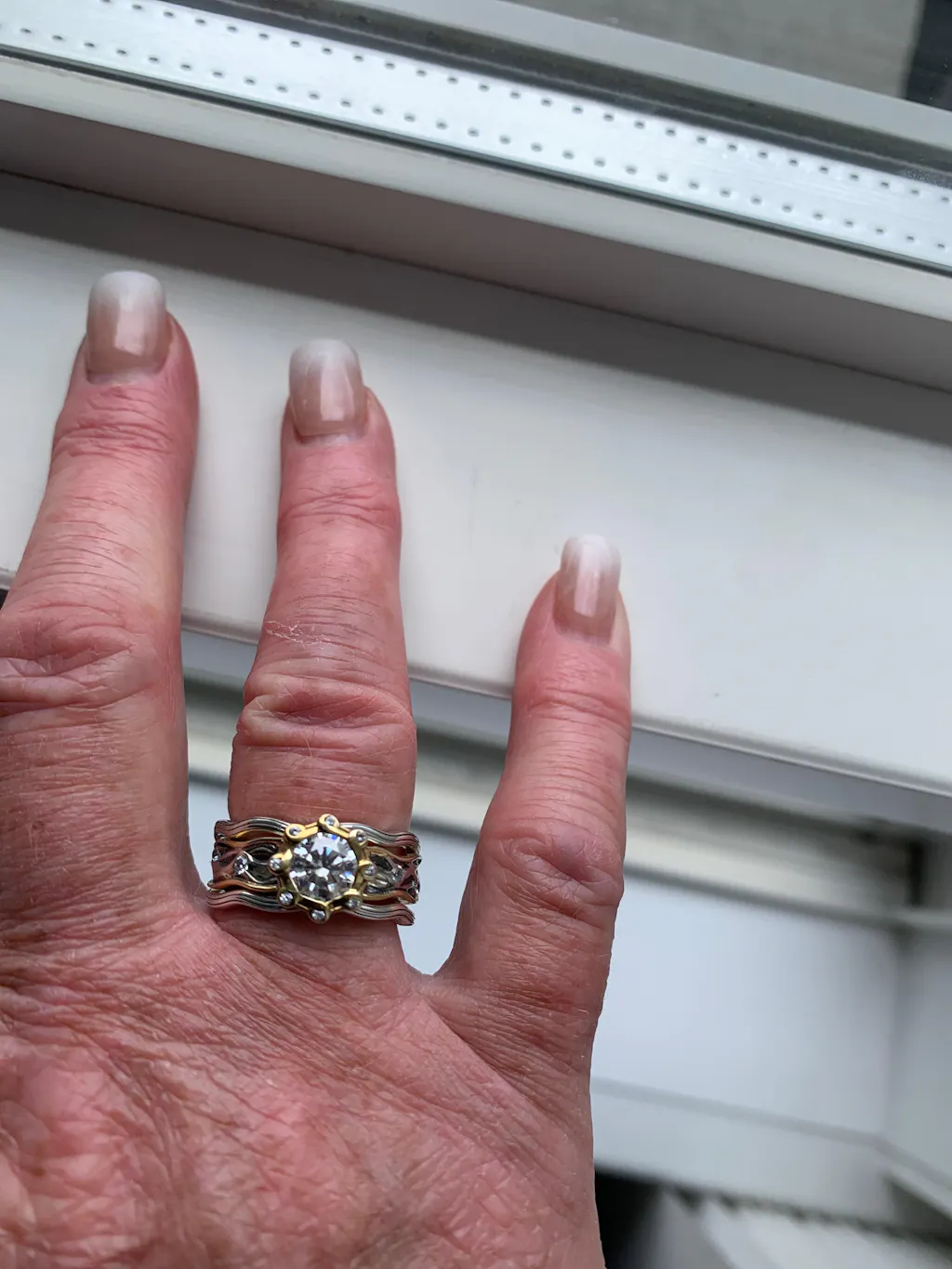 Materials: Sterling Silver and 10k Yellow Gold with White Moissanite and Cubic Zirconia
